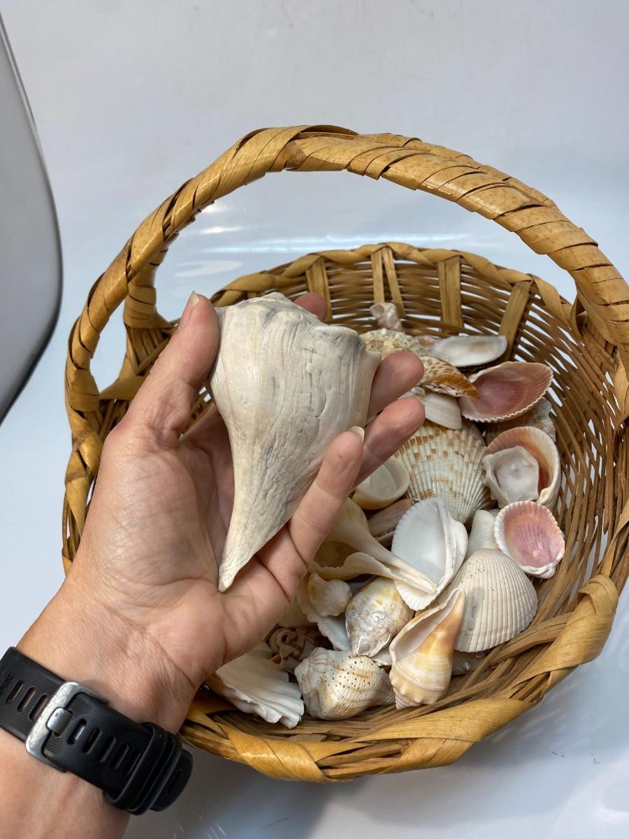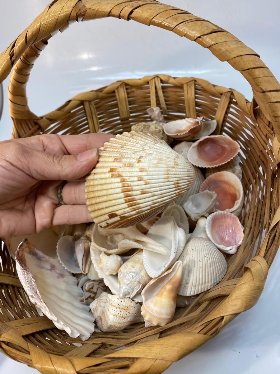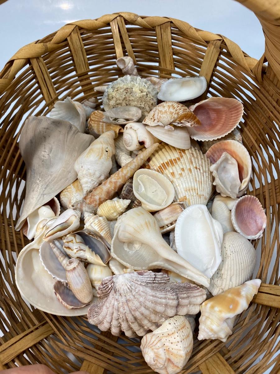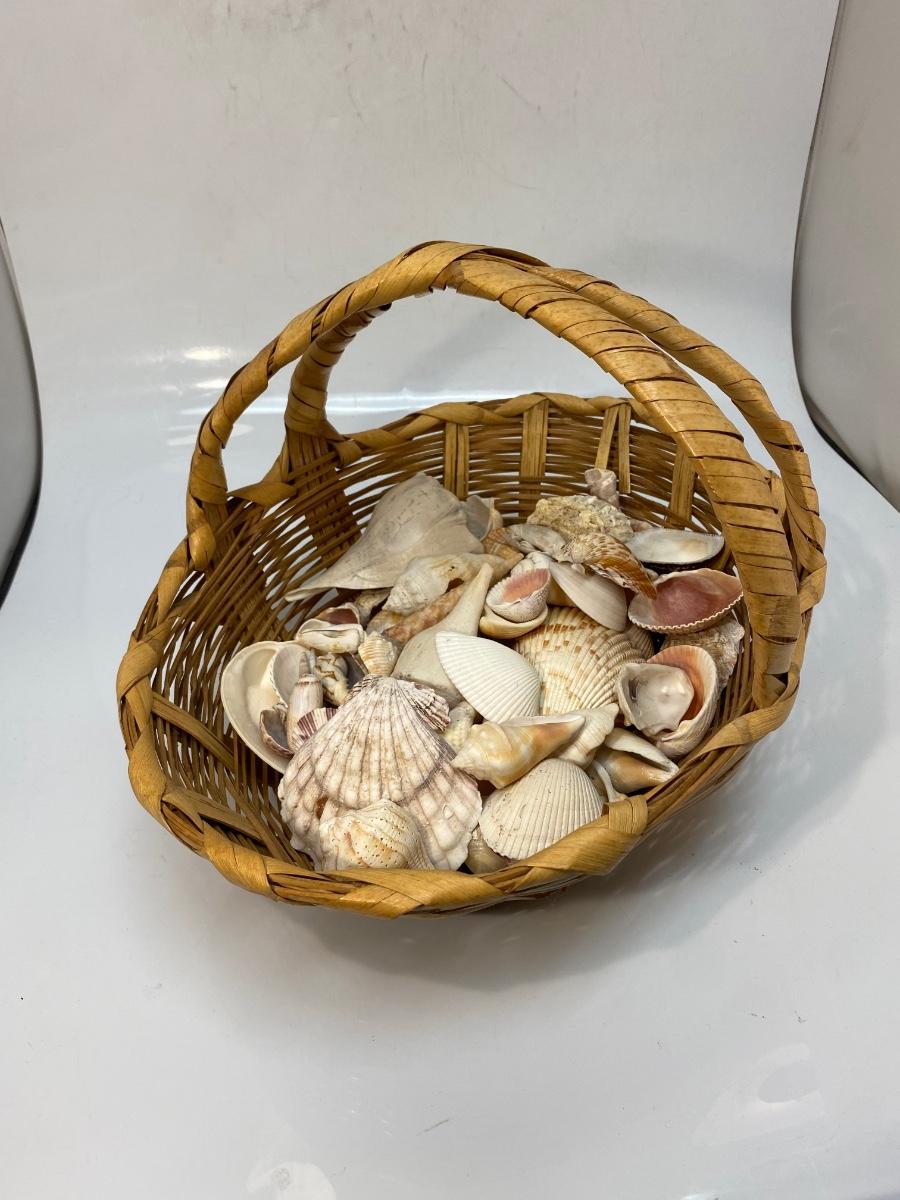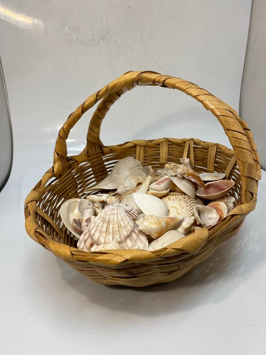 Large Wicker Basket Full of Various Seashells Beachy Coastal Decor. Lots of various shells in different sizes. Great for decor or craft projects.