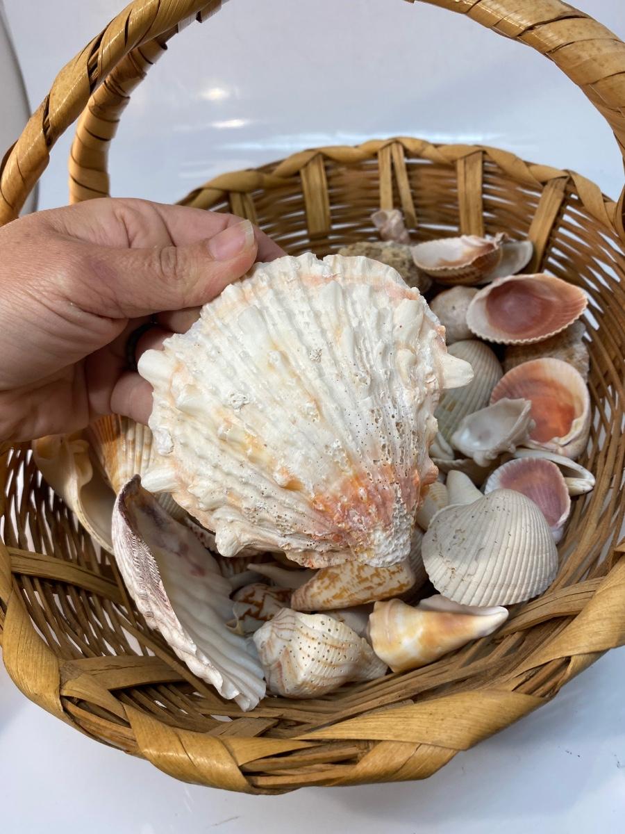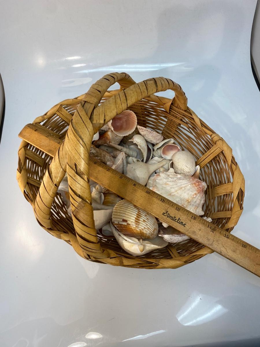 Large Wicker Basket Full of Various Seashells Beachy Coastal Decor