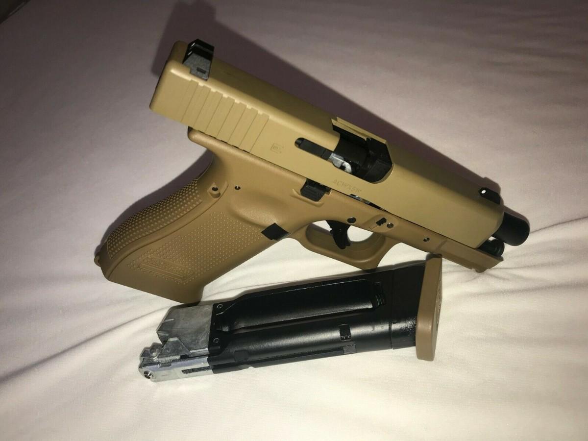 GLOCK describes the G19X as its first “crossover pistol”. It combines the full-sized frame of the G17 with the compact slide of the G19. The special color, Coyote, sets this pistol apart from other models. This licensed CO2-powered airgun version from Umarex is an authentic replica with the exact dimensions and markings of the original. It fires 4.5-mm steel BBs with a maximum of 2 joules, and the blowback gives you a powerful recoil. The all-in-one magazine accommodates the cartridge plus 18 steel BBs. Officially licensed product of GLOCK