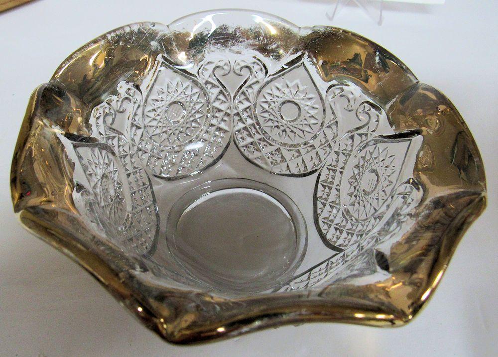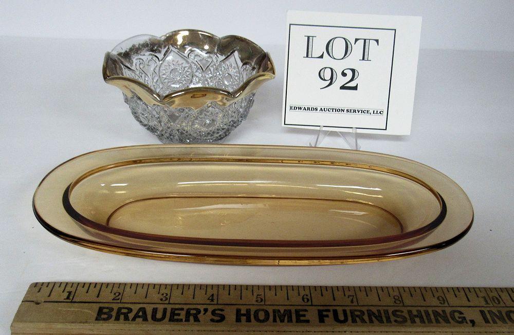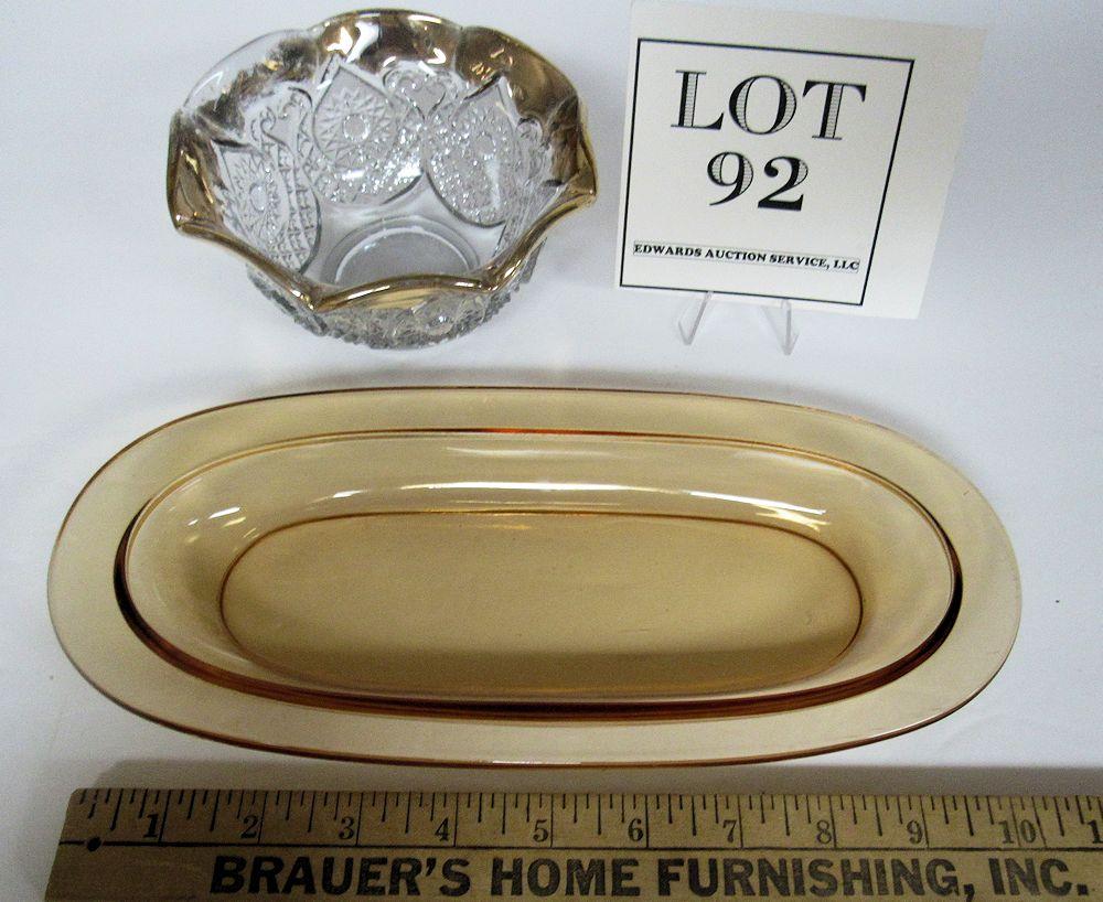 Vintage Amber Glass Tray and Pressed Glass Bowl