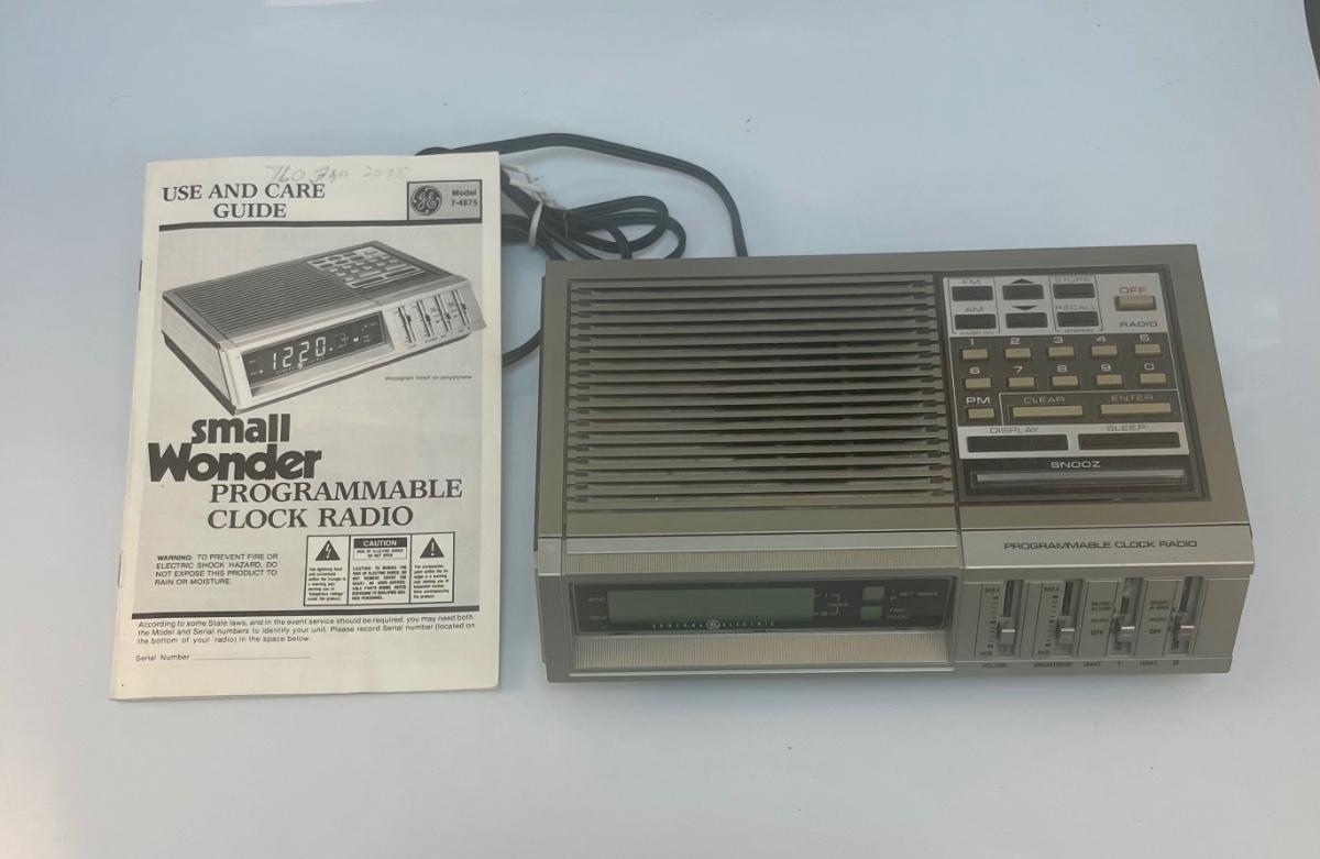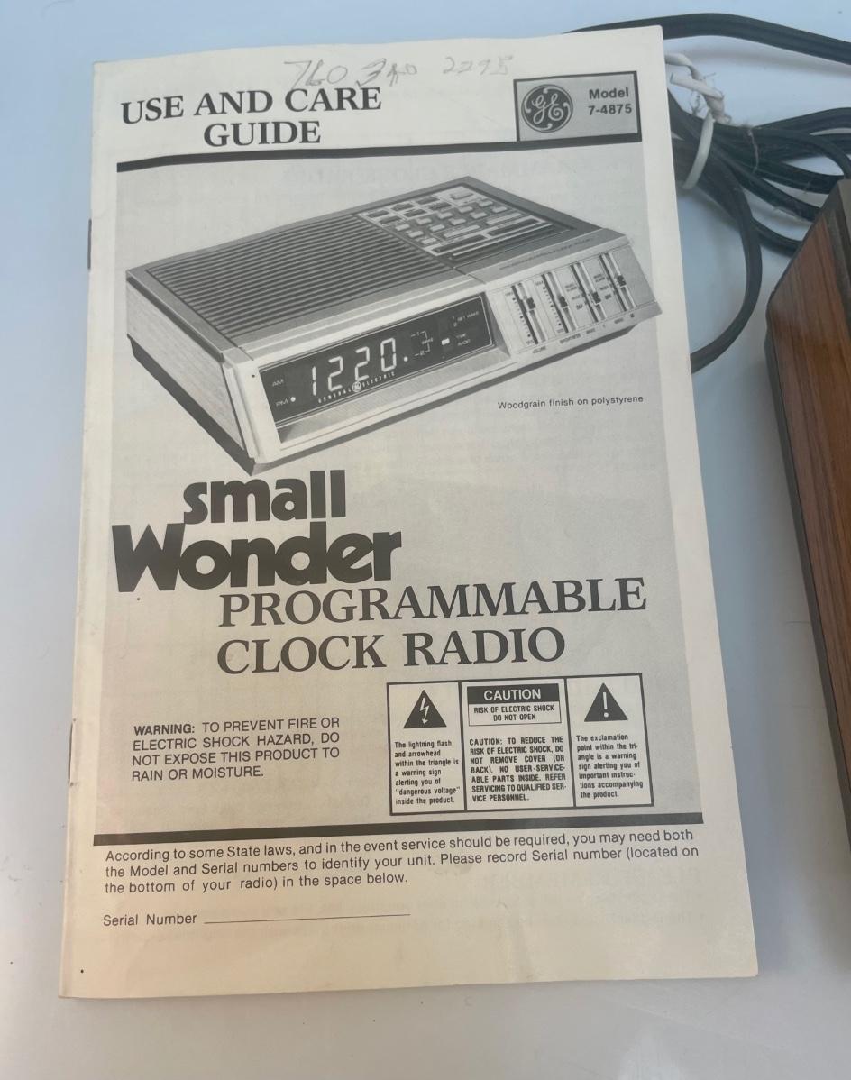 Vintage Retro Small Wonder Programmable AM/FM Clock Radio. In working condition, comes with original manual. Has dual alarms and push button settings.