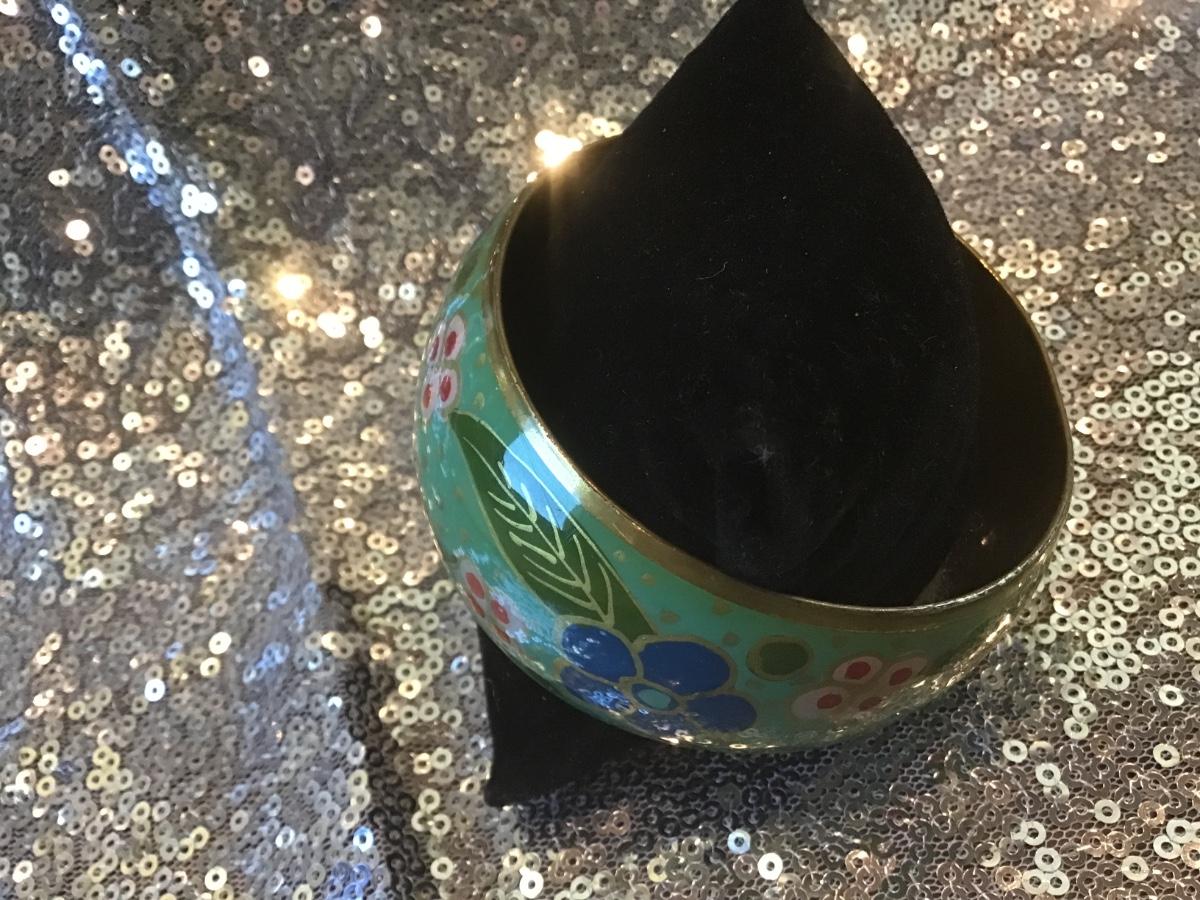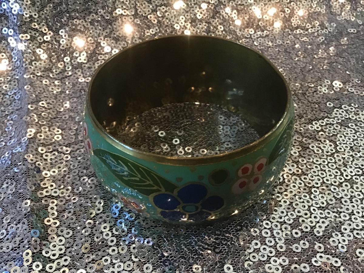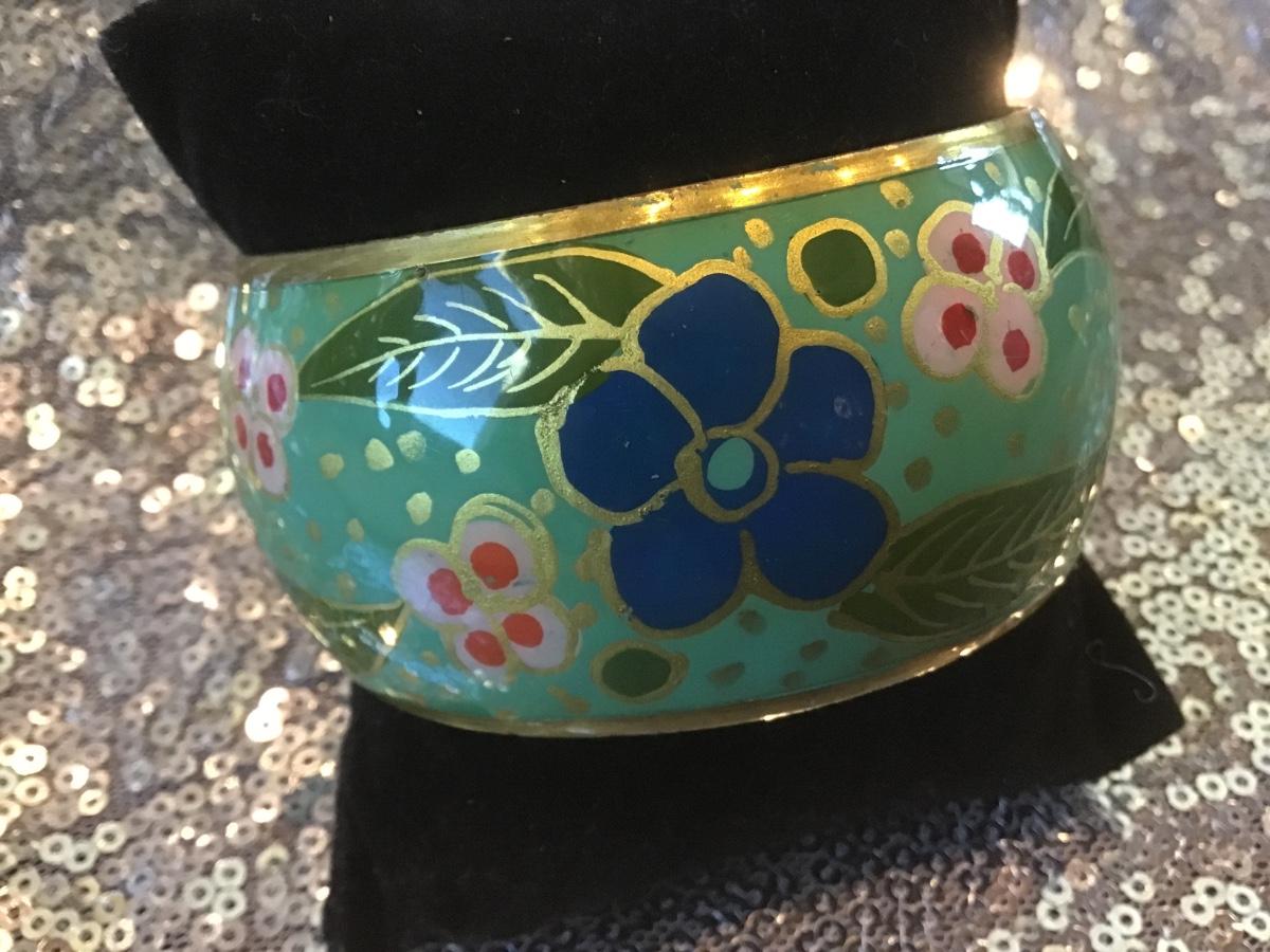 Vintage HAND PANTED FLOWERS Brass Type BANGLE BRACELET