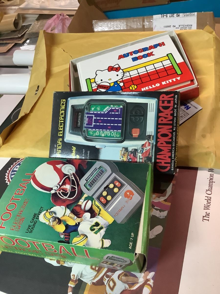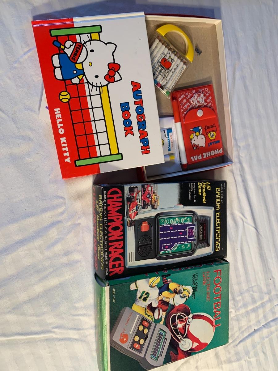 Vintage Handheld Electronics Football Champion Racer + Hello Kitty Autograph Book