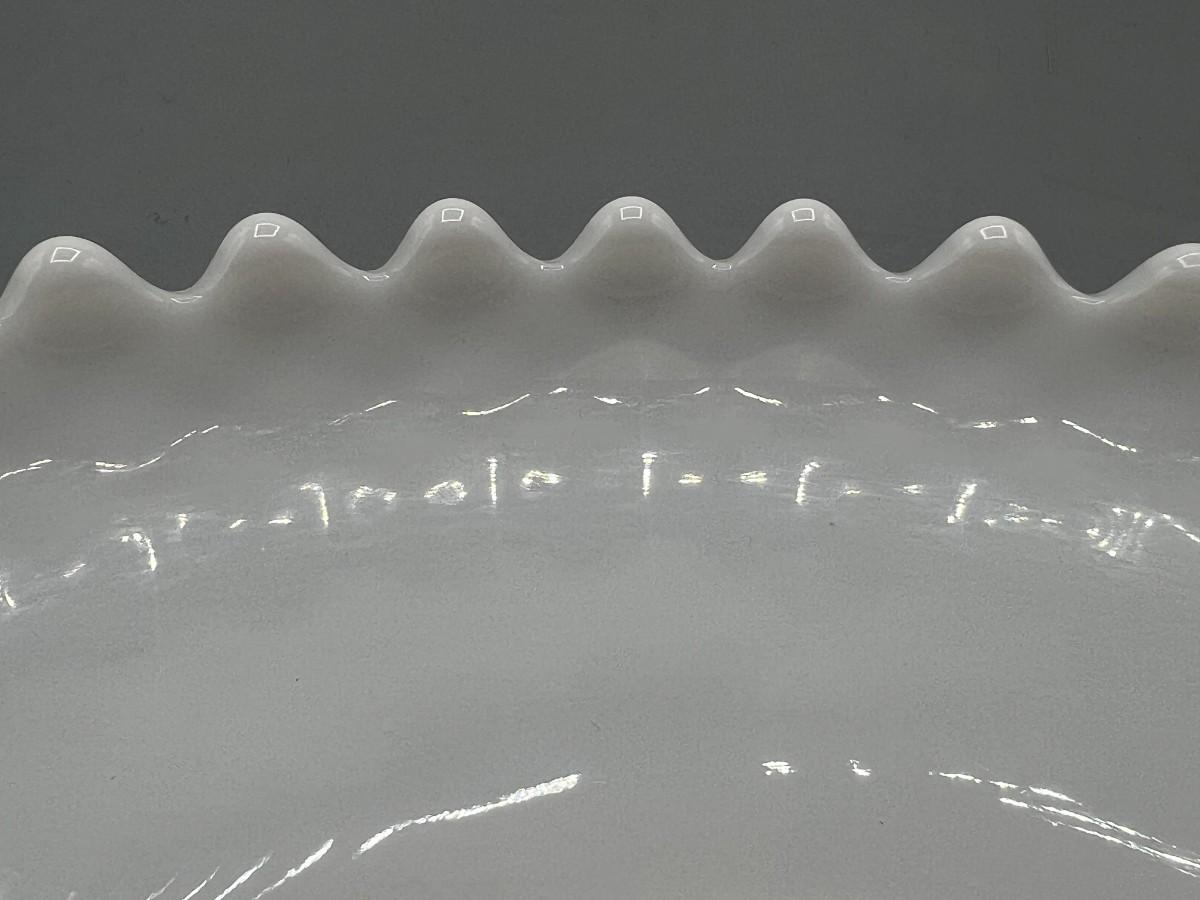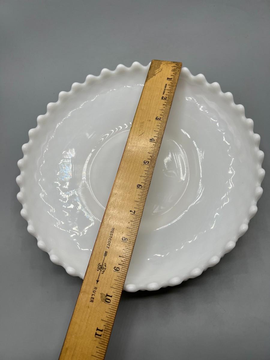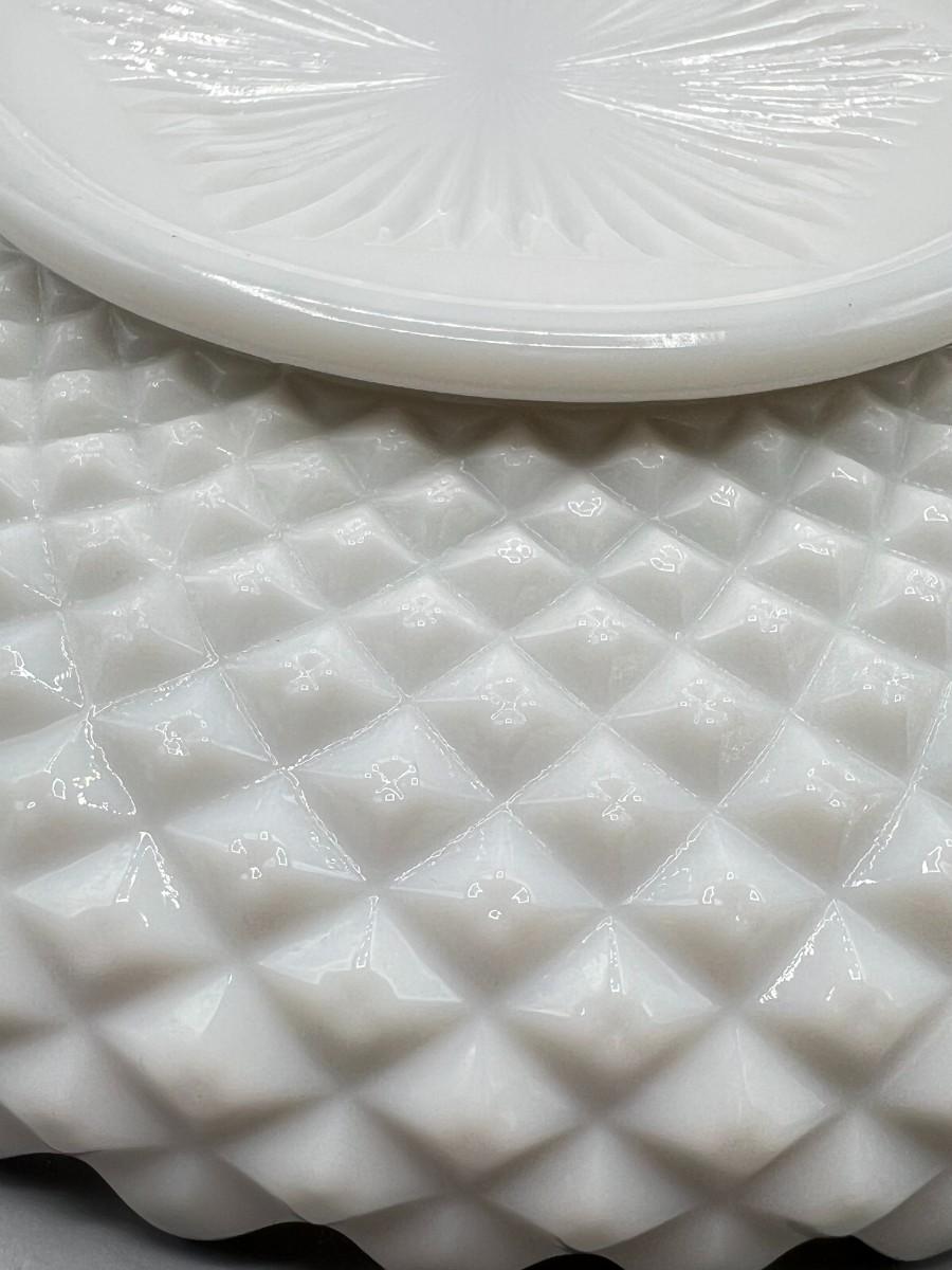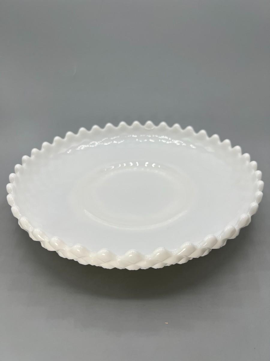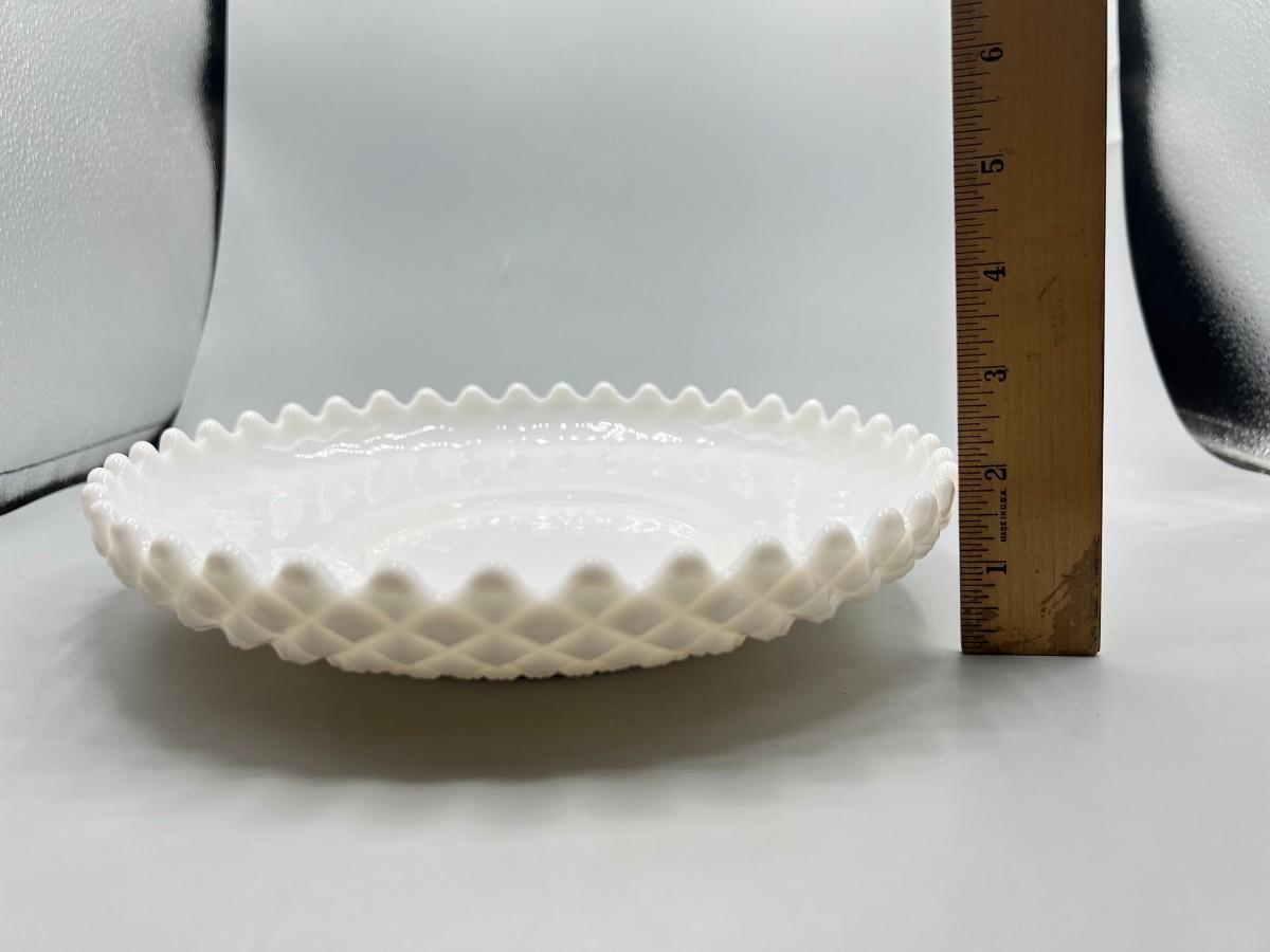 Vintage Wide Round Dish Diamond Pattern Milk Glass Serving Plate