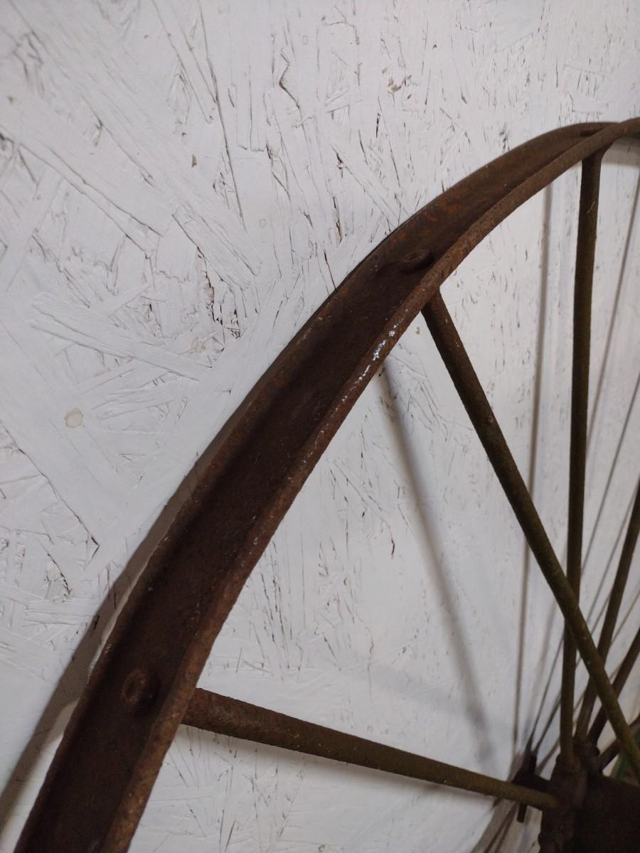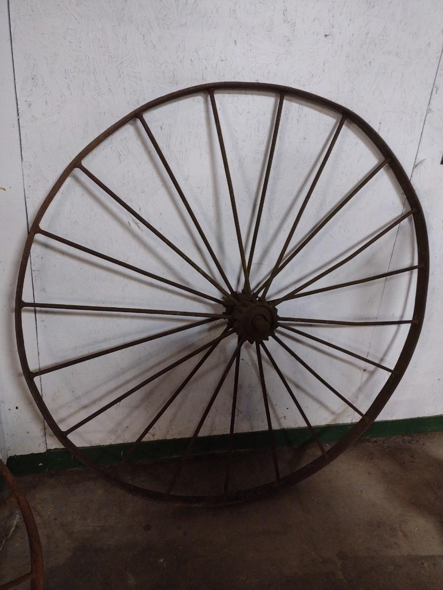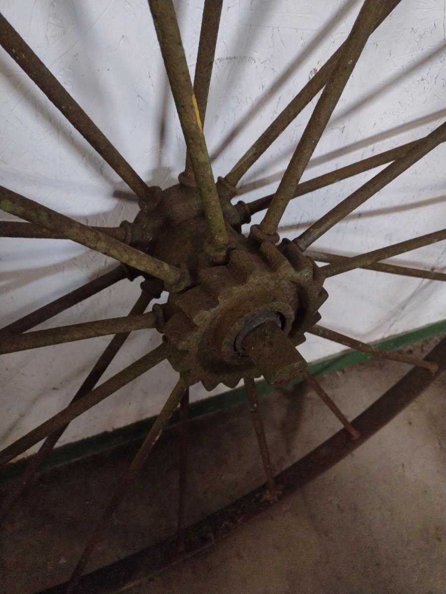 Large Antique Metal Farm Wheel with Cog Gear Hub